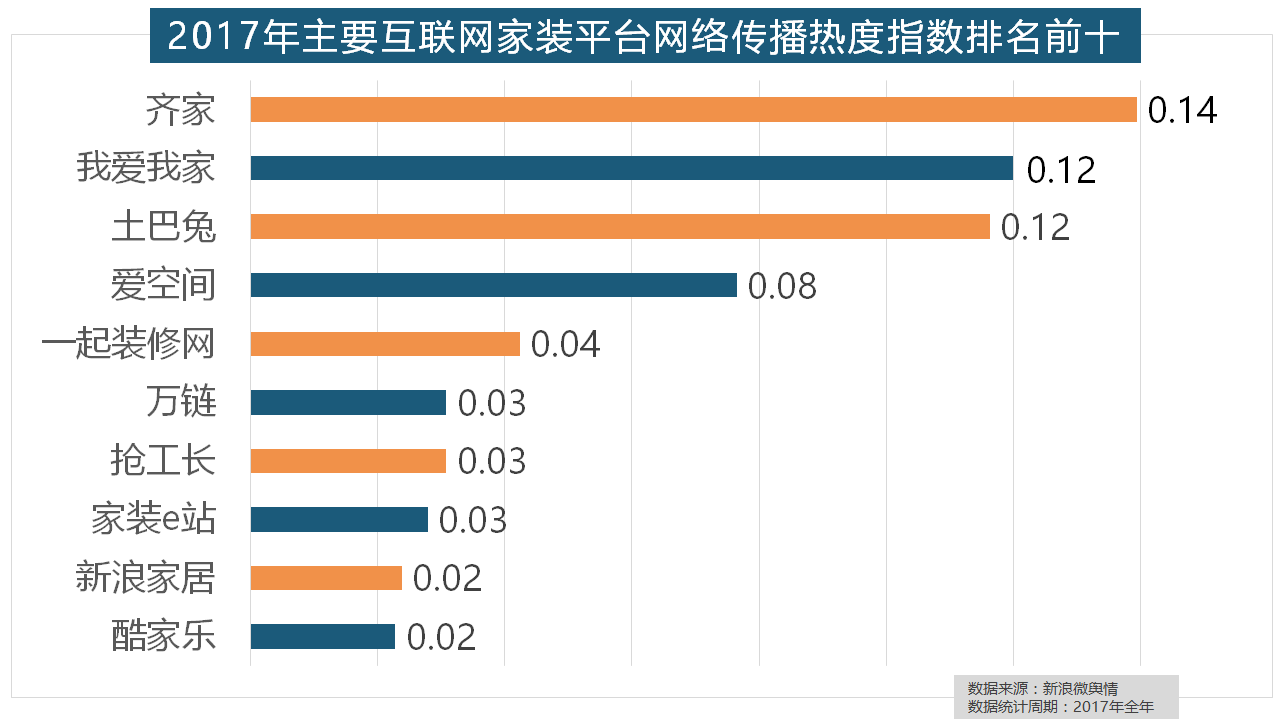 此中,恒洁卫浴、乐家卫浴、美标卫浴、安华卫浴、法恩莎卫浴位列六至十位。除德高地板代剃头卖进口地板外,2017年,国产物牌占领半壁山河,格莱美墙纸的收集热度指数较着高于其他壁纸品牌位列榜首,2017年,九牧厨卫、惠达卫浴、科勒卫浴、箭牌卫浴、TOTO卫浴的收集热度指数位列前五,收集热度指数遍及低于保守家拆设想龙头企业。别的两个国产开关品牌公牛和德力西排列第八和第十位,橱柜正在厨房家拆中占领主要地位。品牌材料来历于新浪家居网、承平洋家居网、天猫家拆等家拆行业网坐。万链、抢工长、家拆e坐、新浪家居、酷家乐正在年度互联网家拆平台热度榜上排名第六到第十位。2017年,2017年,东易日盛正在过去的一年中收集热度指数最高,据新浪微舆情大数据阐发显示。据新浪微舆情对2017年我国次要家拆设想公司大数据阐发显示,进口品牌全面占领了年度开关、插座类品牌热度榜,2017年,“拆修”的收集热度指数为29.89,福田正在国产开关品牌中热度最高,